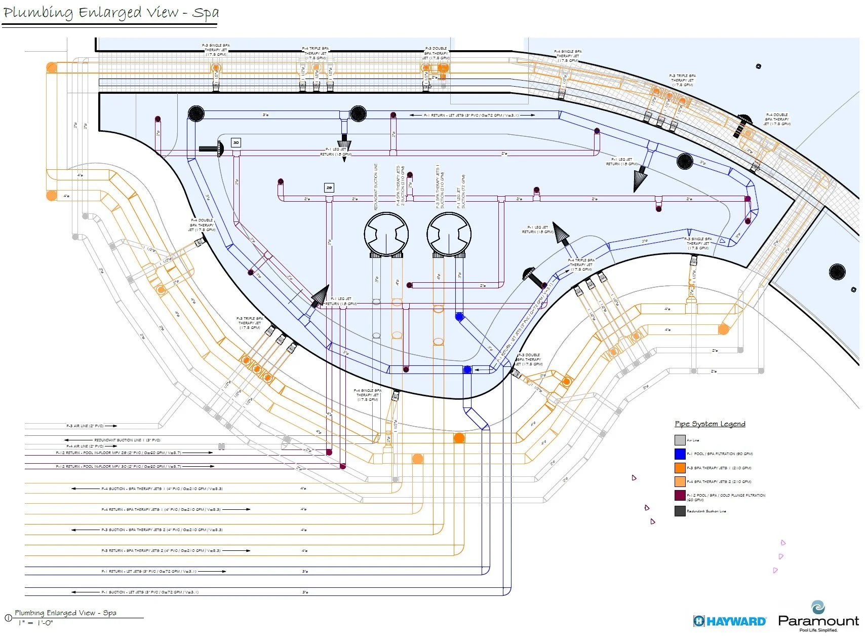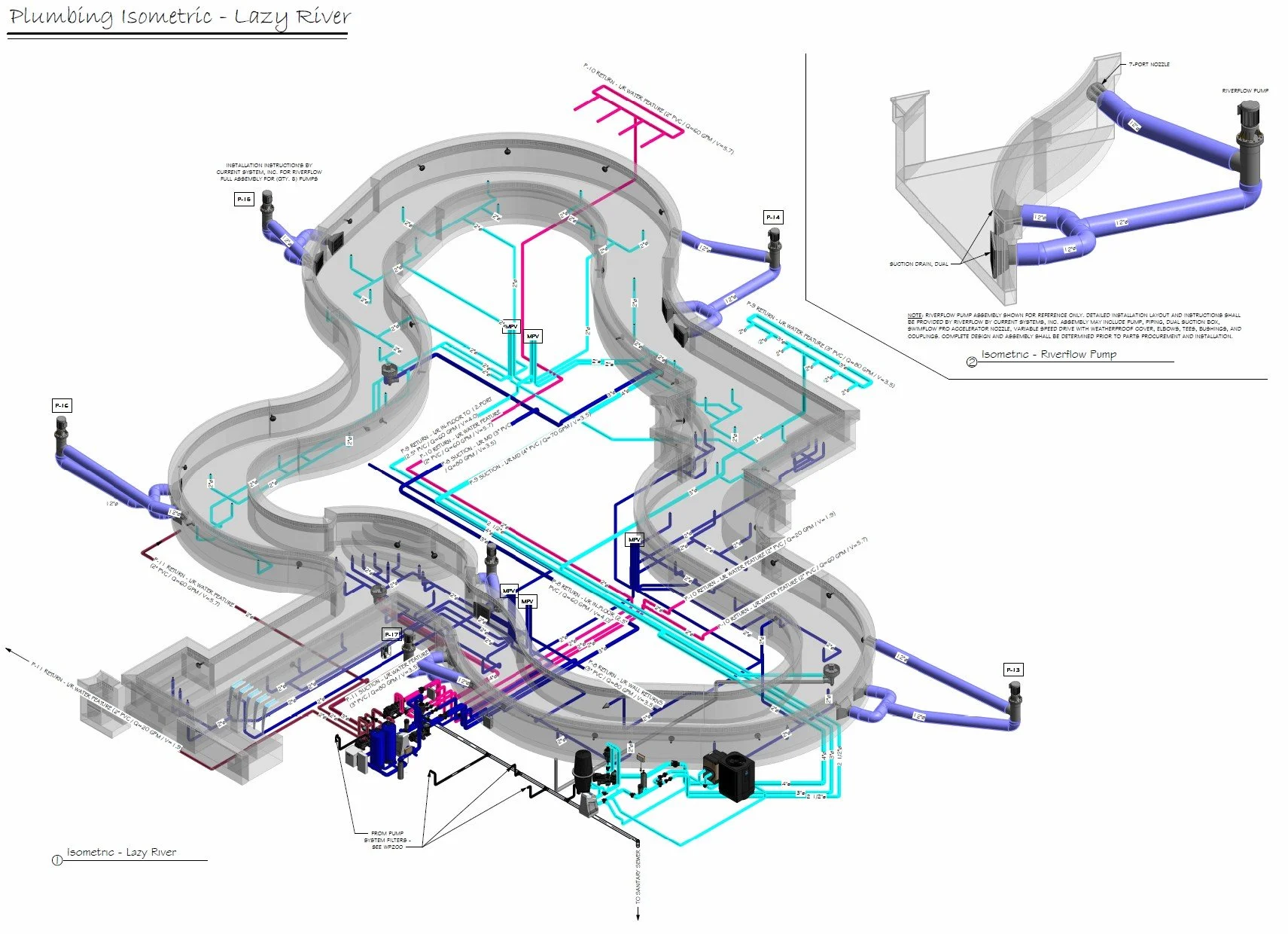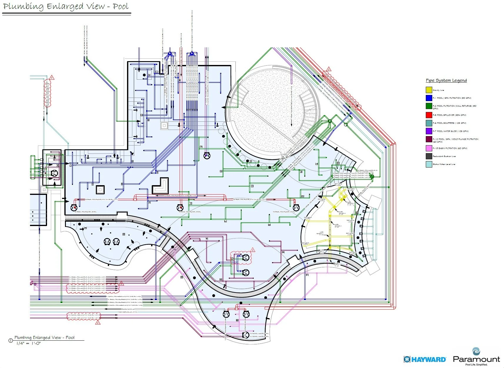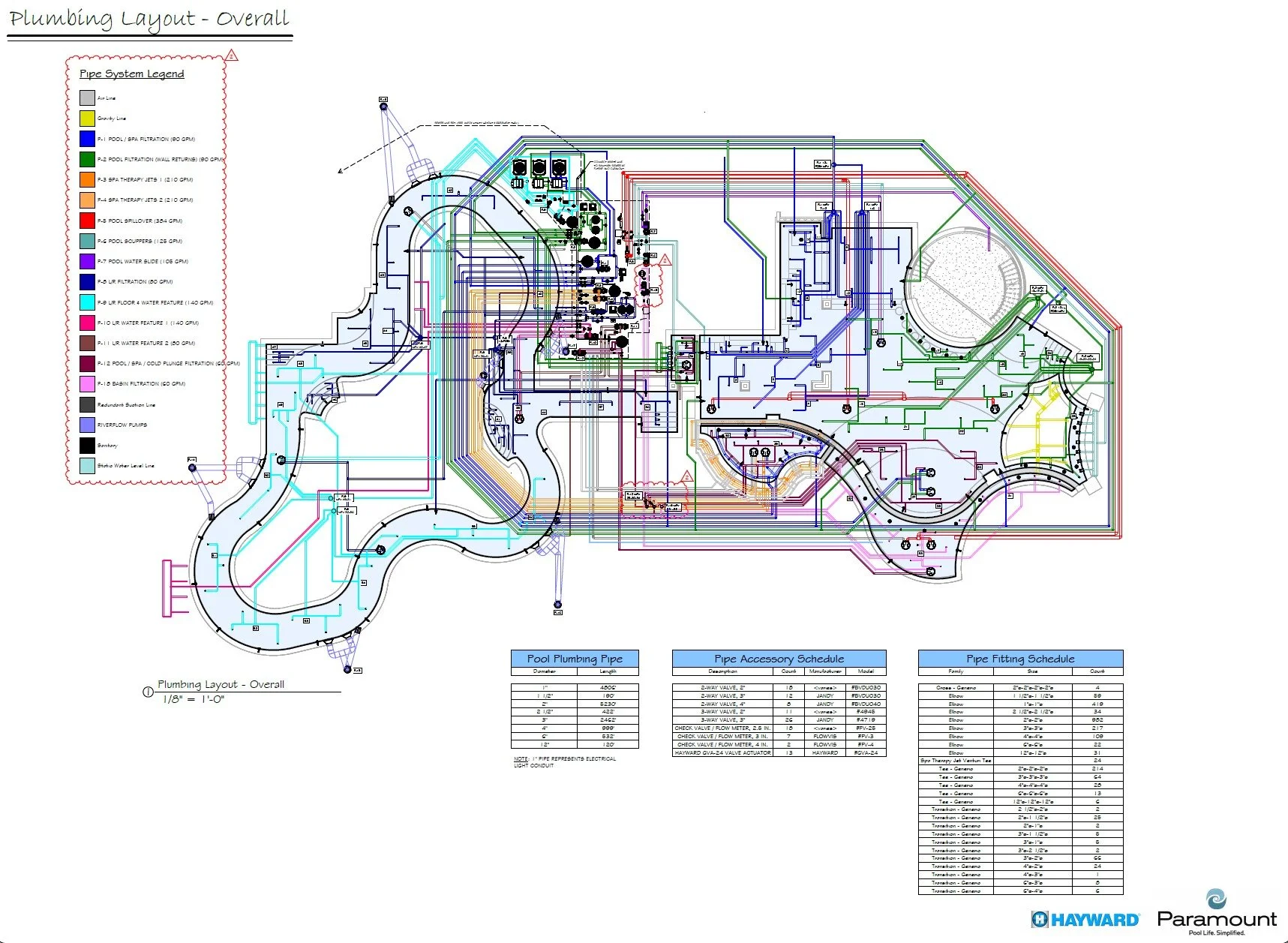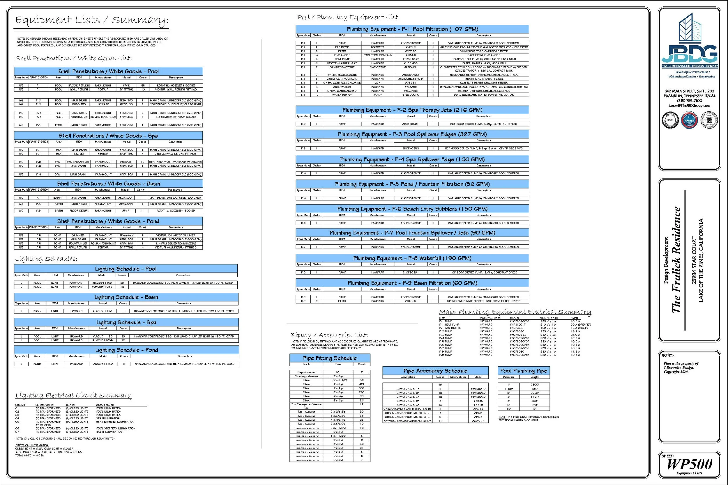 Schematic Pool Equipment Pad Layout (Specified Equipment, Pad Plumbing, Data Charts, Details)