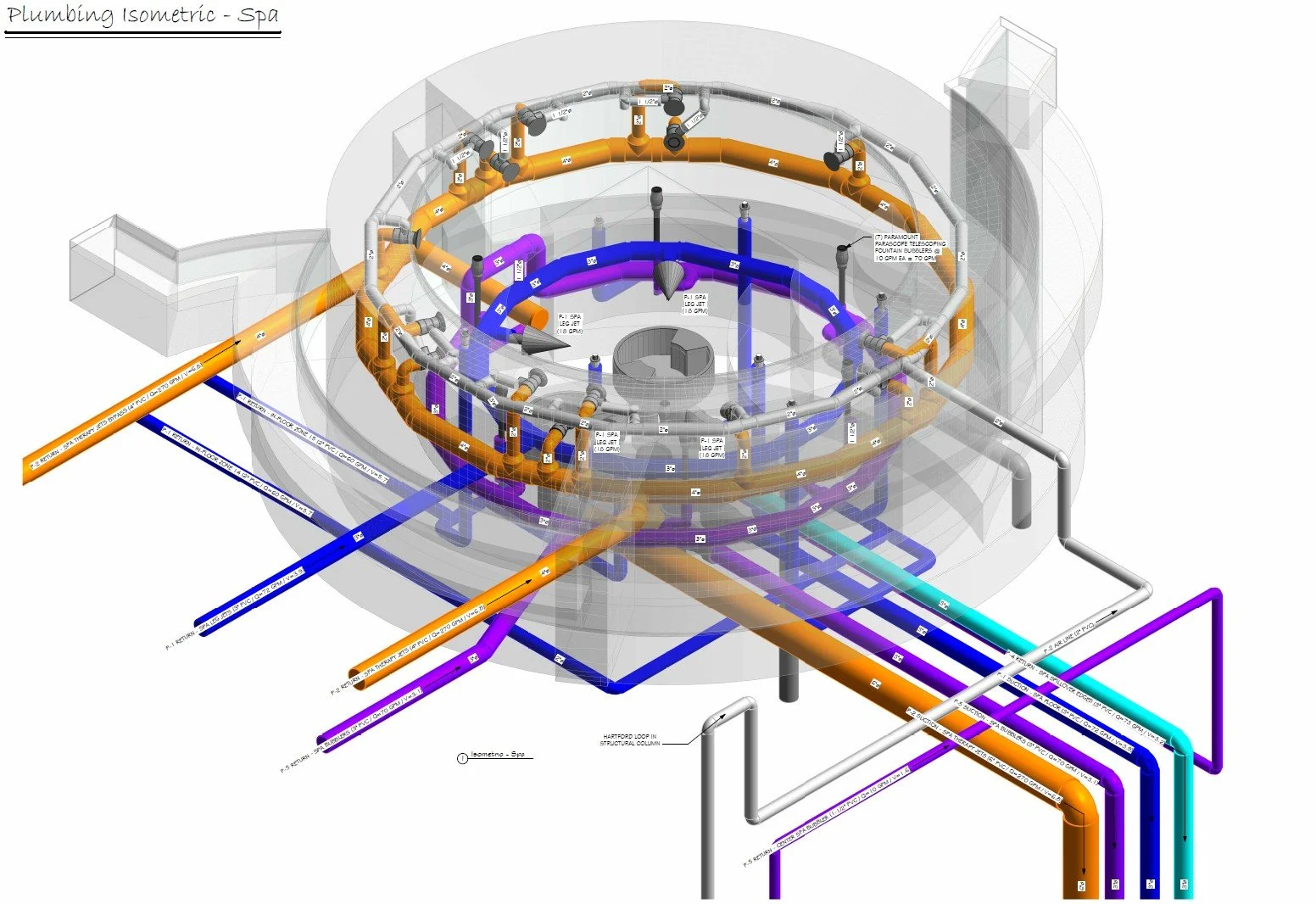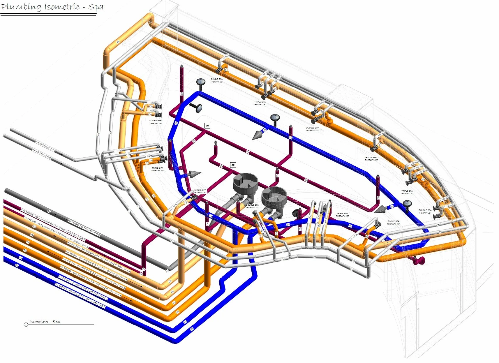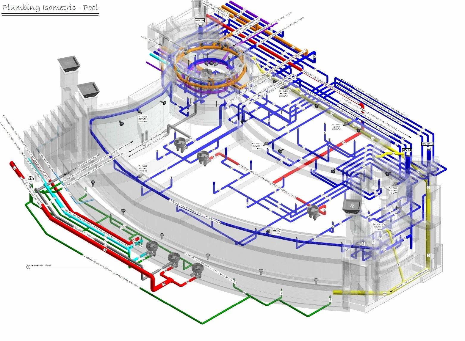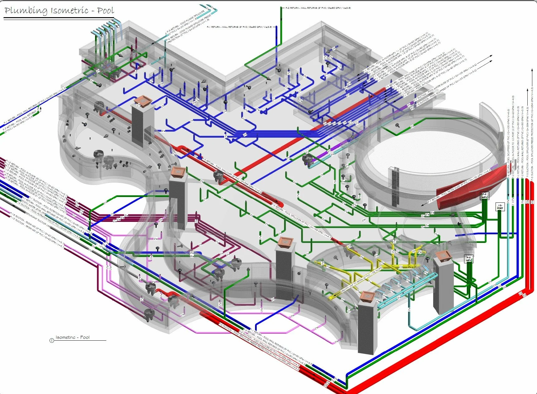 Schematic Plumbing Layout Design (Pipe size, flow rates , line velocities - 2D + Isometric Plans)