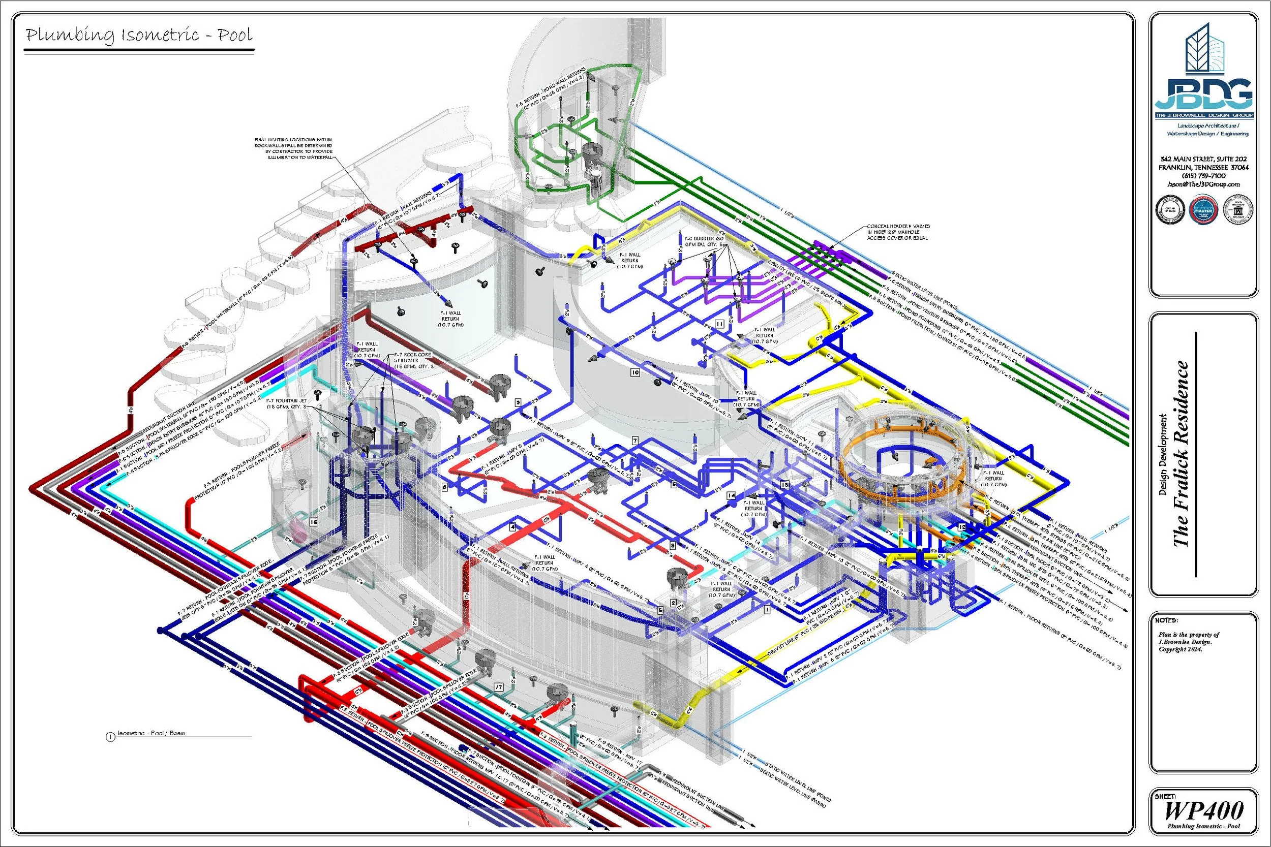 At the J.Brownlee Design Group, we bridge the gap between inspired design and flawless function. Our team provides specialized hydraulic and systems engineering for pools, spas, and watershapes —bringing clarity, precision, and performance to projects of all scopes and scales -- from basic pools to advanced integrated watershape creations. Partnering with builders, designers, and homeowners across the country, we deliver the critical technical plans, hydraulic schematics, and equipment specifications that transform creative concepts into reality. From luxury residential retreats to large-scale resort installations, our goal is simple: to make every watershape flow perfectly—beautifully balanced, energy-efficient, and engineered to last.